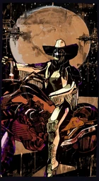 Если в классическом изображении карты нарисован ребенок на белом коне, то на этой карте изображена ковбойка в белой одежде, сидящая на золотом мотоцикле. Этот западный эстетический образ, описанный Брайсом Мосли как представление "проще, лучшего времени". Позади нее несколько космических станций, напоминающих Хрустальный Дворец из одноименного финала, вырисовываются на фоне полной луны или, возможно, планеты. Яркая вспышка отражается от металлического лица ковбойки, предположительно, от самого Солнца.