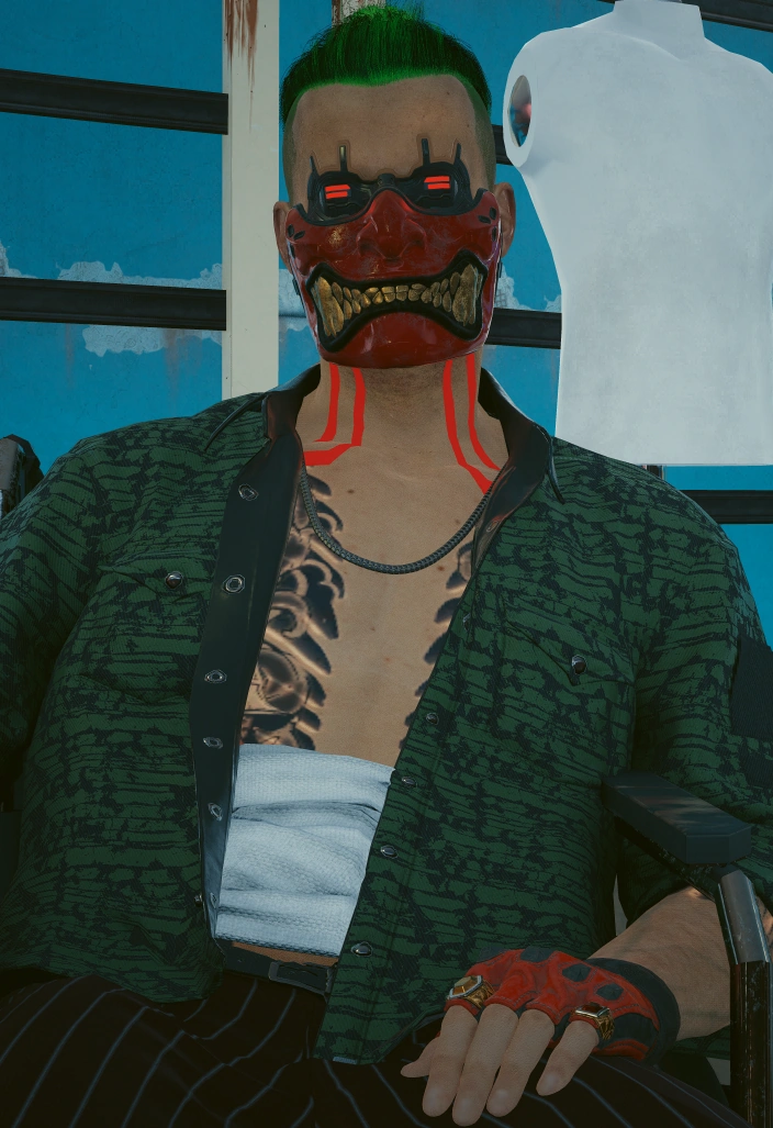Ранее данный продавец состоял в банде «Тигриные когти» и до сих пор носит её метку. После того, как он получил серьёзную травму позвоночника, его босс решил, что теперь ему нет места в банде, после чего тот был вынужден уйти из «когтей» и заняться торговлей одеждой.