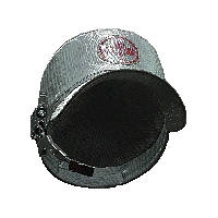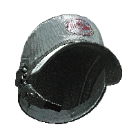 An black cap with a red Arasaka logo and a camera.