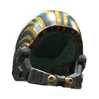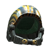 A black and yellow striped aramid-reinforced helmet.