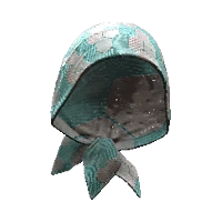 A cyan and white head bandana with hexagonal pattern.