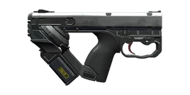 The Quasar is a semi-automatic, repeating revolver with an automatic secondary option. Its unique design is characteristically common of the Darra Polytechnic Corporation's marketing niche of being impressively appealing to the eye whilst not being of particularly decent quality in grade. The Quasar's drum magazine, located at the rear of the weapon, can hold up to 20 rounds, which are filled with birdshot, and effectively makes the Quasar a powerful machine pistol should the operator be able to charge it to capacity. The philosophy behind the choice of birdshot rounds is simple - projectile speed. Inside the Quasar's barrel, there are four electroconductive rails opposing one another, resulting in an incredible magnitude of force capable of shooting projectiles through half an inch of solid lead surface. True to Darra Polytechnic's nature, the revolver is made of low quality, cheap plastics and subpar metals that lower costs, making it an affordable purchase for the disparately poor.[1][2]