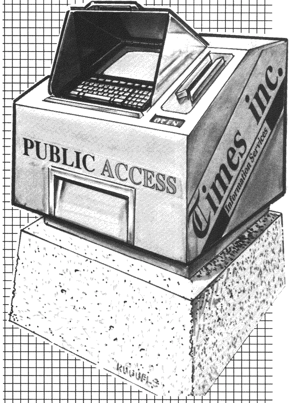 Established in the 2020s, Data Terms are curbside modules and computer terminals mounted in very durable concrete pillars, providing access to public information of any kind. They also serve as cyber-access port connections to the Net.[1]