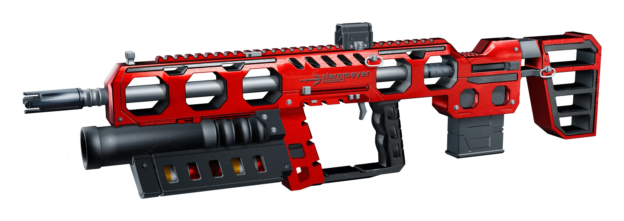 The M-04 Variable Assault is an Exotic Assault Rifle and Grenade Launcher combination manufactured by Sternmeyer in Cyberpunk RED.